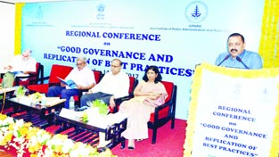 Union Minister Dr Jitendra Singh addressing the valedictory function of the two-day Regional Conference on Governance, at Goa on Friday.