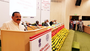 Union Minister Dr Jitendra Singh addressing the valedictory session of the 3-day India-Africa Health Sciences Meet, at Vigyan Bhawan, New Delhi on Saturday.