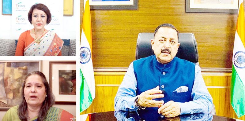 Union Minister Dr Jitendra Singh addressing the Webinar on ‘Sustainable Livelihoods : Investing in Women for a New India’ organised by FICCI-FLO, on Thursday.