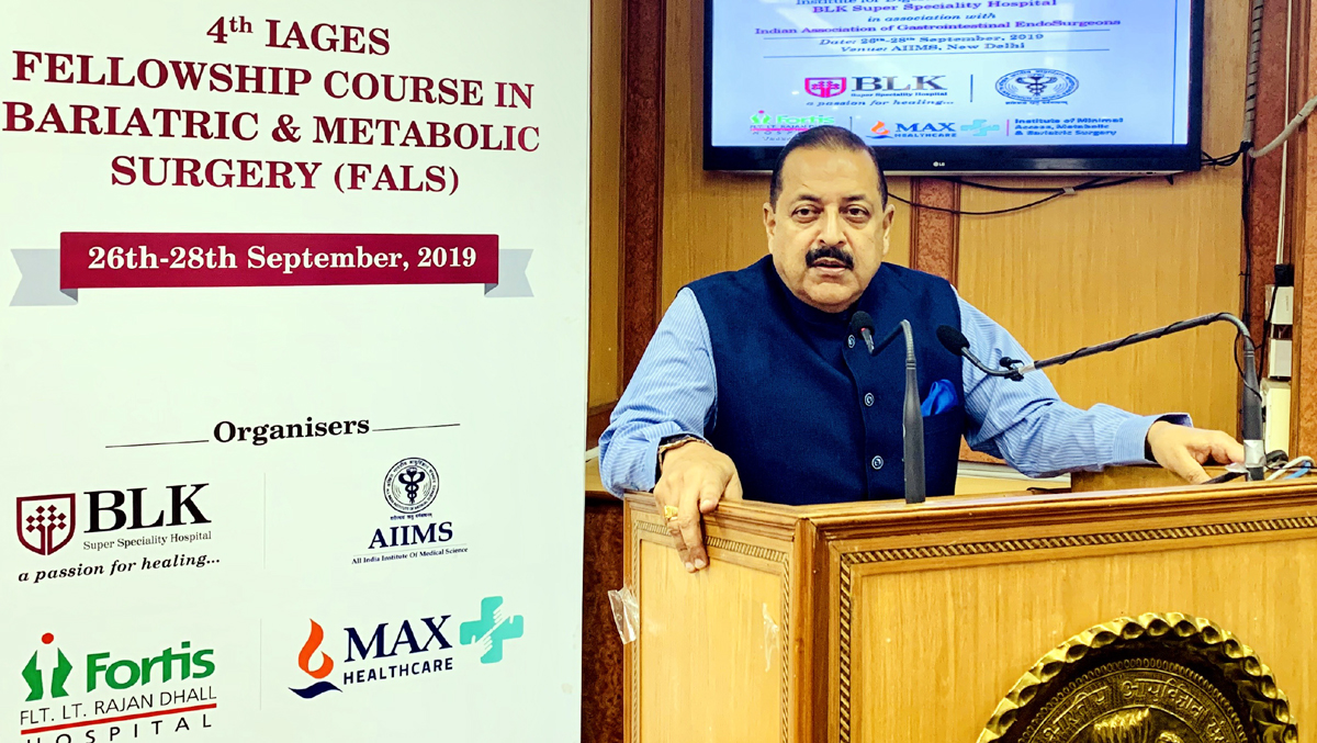 Union Minister Dr Jitendra Singh addressing three-day National Conference on “Bariatric and Metabolic Surgery” at AIIMS in New Delhi.