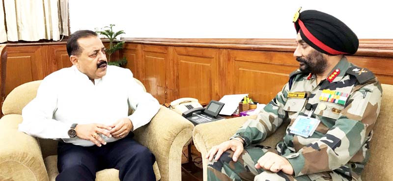 Union Minister Dr Jitendra Singh being briefed by Director General, Border Road Organization (BRO), Lt. Gen. Harpal Singh about various road projects in Kathua-Udhampur-Doda sector, on Friday.