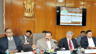 Union Minister Dr Jitendra Singh briefing the media after releasing the “Year-end Review 2016” of the Union Ministry of Personnel (DoPT & ARPG) at North Block, New Delhi on Friday.