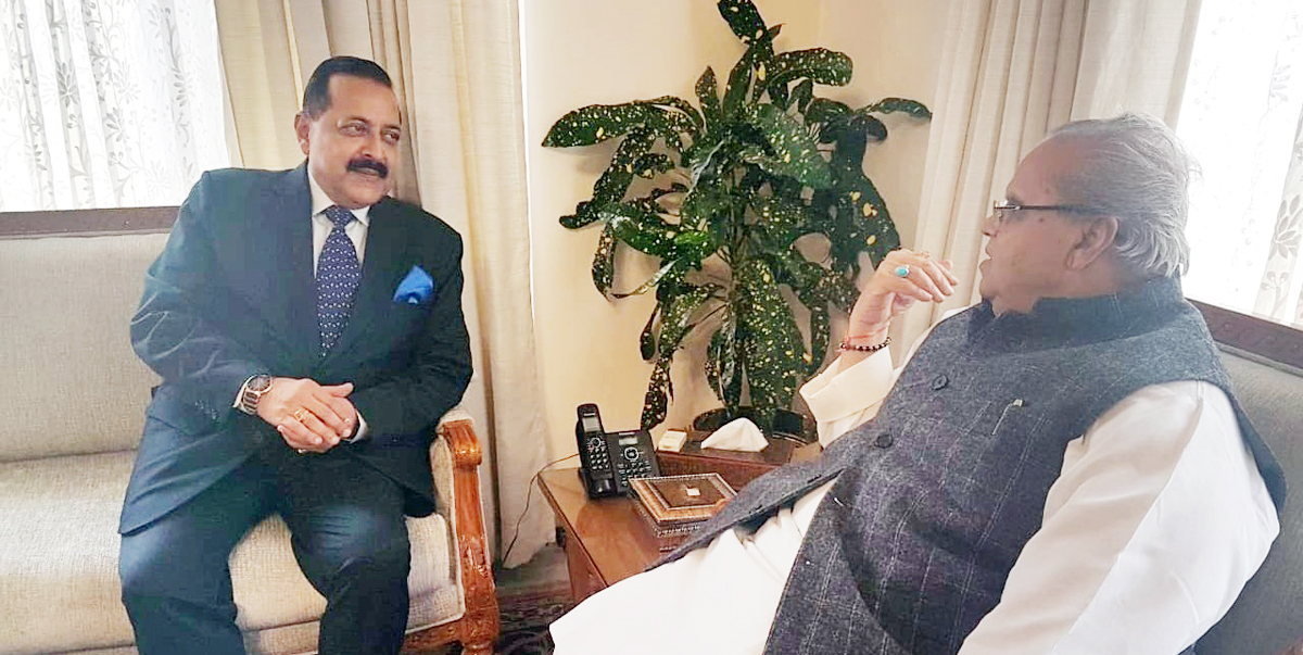 Union Minister Dr Jitendra Singh calling on Governor Satya Pal Malik at Raj Bhavan, Jammu on Sunday. By Daily Excelsior - November 12, 2018 Share FacebookTwitterWhatsAppPinterestLinkedinCopy URLTelegramEmailTumblrReddItPrintKoo Union Minister Dr Jitendra Singh calling on Governor Satya Pal Malik at Raj Bhavan, Jammu on Sunday. Union Minister Dr Jitendra Singh calling on Governor Satya Pal Malik at Raj Bhavan, Jammu on Sunday. Follow our WhatsApp channel