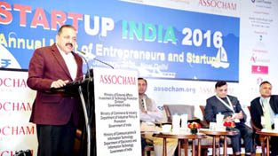 Union Minister Dr Jitendra Singh delivering the inaugural address at the one – day conference on “Startup India” organized by ASSOCHAM, at New Delhi on Wednesday.