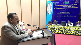 Union Minister Dr Jitendra Singh delivering the prestigious 47th Lal Bahadur Shastri Memorial Lecture at Indian Agricultural Research Institute, Pusa, New Delhi on Thursday.