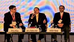 Union Minister Dr Jitendra Singh, flanked by renowned Cardiologist, Dr Naresh Trehan and President / ChairmanMax Group, Rahul Khosla, speaking at a panel discussion on “Leapfrogging to the future – Vision 2030” at the 13th India Health Summit 2016 organized by the Confederation of Indian Industry (CII), at New Delhi on Thursday.