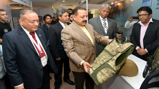 Union Minister Dr Jitendra Singh going around the various exhibitions stalls during the 6th International Conference and Exhibition on “Homeland Security” at New Delhi on Friday.