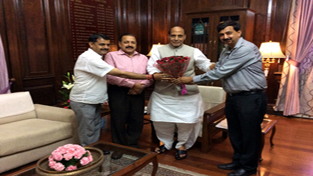 Union Minister Dr Jitendra Singh greeting Union Home Minister Raj Nath Singh during a meeting at New Delhi on Wednesday.