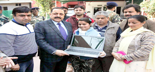 Union Minister, Dr Jitendra Singh handing over a laptop to a deserving BSc student at Jammu on Monday. —Excelsior/Rakesh By Daily Excelsior - February 16, 2016 Share FacebookTwitterWhatsAppPinterestLinkedinCopy URLTelegramEmailTumblrReddItPrintKoo Union Minister, Dr Jitendra Singh handing over a laptop to a deserving BSc student at Jammu on Monday. —Excelsior/Rakesh Union Minister, Dr Jitendra Singh handing over a laptop to a deserving BSc student at Jammu on Monday. —Excelsior/Rakesh Follow our WhatsApp channel