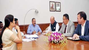 Union Minister Dr Jitendra Singh holding a meeting on e-Governance with United Nations Development Programme (UNDP) team led by Yuri Afanasiev at New Delhi.