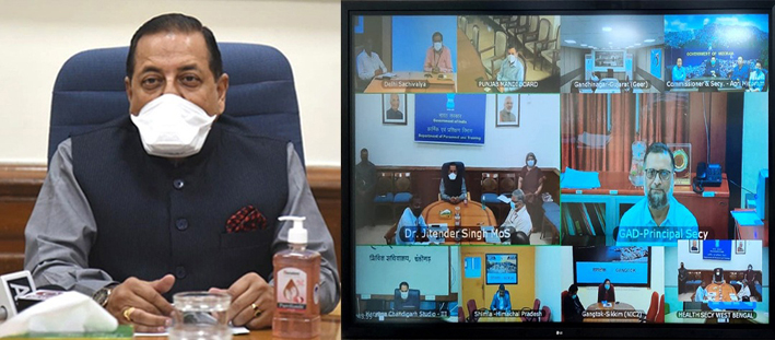 Union Minister Dr Jitendra Singh holding nationwide video conference interaction with Secretaries of GAD/Personnel from different States and Union Territories,on the occasion of Civil Services Day, on Tuesday.