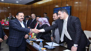 Union Minister Dr Jitendra Singh being introduced to the members of visiting delegation of the Republic of Yemen at New Delhi on Monday.