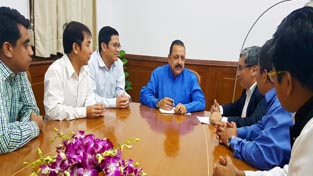Union Minister Dr Jitendra Singh listening to the grievances of a delegation representing “Chakma” migrants from erstwhile East Pakistan, at New Delhi.