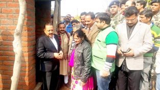 Union Minister Dr Jitendra Singh on a visit to the site of construction of Sulabh Shauchalaya toilets along International Border in district Kathua on Sunday. -Excelsior/Gautam