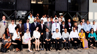 Union Minister Dr Jitendra Singh posing for photograph with a group of young foreign Space researchers attending an interactive training programme at ISRO Satellite Station at Bengaluru.