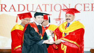 Union Minister Dr Jitendra Singh presenting the degree scroll to one of the recipients during the Graduation ceremony at Tata Memorial Cancer Centre, Mumbai on Thursday.