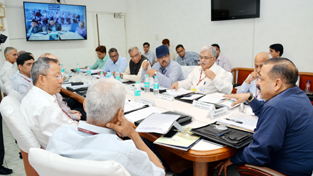 Union Minister Dr Jitendra Singh presiding over a meeting of “North-Eastern Space Application Centre” (NESAC) Society at which he is also seen directly interacting, through video conference,with senior officers of the eight North-Eastern States, at New Delhi.