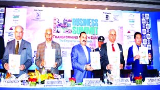 Union Minister Dr Jitendra Singh releasing the Northeast Business Manual during the inaugural session of two-day Northeast Business Summit at Hotel Lalit, New Delhi on Thursday.