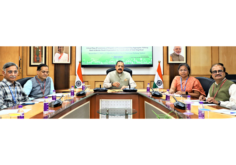 Union Minister Dr Jitendra Singh speaking after virtually flagging-off the dispatch of processed Steel Slag aggregates railway rack from Jamshedpur to Arunachal Pradesh, on Wednesday.