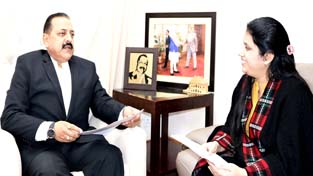 Union Minister Dr Jitendra Singh taking note of the issues raised by Chairperson, Uttar Pradesh State Social Welfare Board, Dr Rupal Agarwal who called on him at New Delhi on Monday.