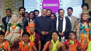 Union Minister Dr Jitendra Singh with a group of cultural artists from Northeast who presented a variety programme on the eve of Republic Day, at New Delhi on Monday. Also seen in picture is noted ideologue and thinker Indresh Kumar.