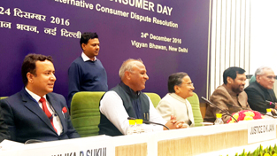 Union Minister for Consumer Affairs and Public Distribution Ram Vilas Paswan, J&K Minister Ch Zulfkar Ali and others during National Consumer Day (NCD) celebrations at New Delhi on Saturday.