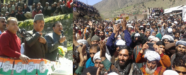 Union Minister Ghulam Nabi Azad during ‘Road Show’ at Thathri on Tuesday. -Excelsior/Tilak Raj