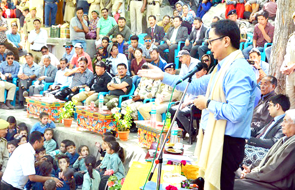 Union Minister of State for Home Kiren Rijiju addressing the gathering in Leh on Thursday. -Excelsior/Morup Stanzin By Daily Excelsior - August 31, 2018 Share FacebookTwitterWhatsAppPinterestLinkedinCopy URLTelegramEmailTumblrReddItPrintKoo Union Minister of State for Home Kiren Rijiju addressing the gathering in Leh on Thursday. -Excelsior/Morup Stanzin Union Minister of State for Home Kiren Rijiju addressing the gathering in Leh on Thursday. -Excelsior/Morup Stanzin Follow our WhatsApp channel