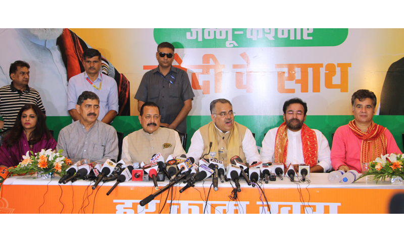 Union Ministers and senior BJP leaders at a press conference in Jammu on Thursday. – Excelsior/Rakesh By Daily Excelsior - August 30, 2024 Share FacebookTwitterWhatsAppPinterestLinkedinCopy URLTelegramEmailTumblrReddItPrintKoo Union Ministers and senior BJP leaders at a press conference in Jammu on Thursday. - Excelsior/Rakesh Union Ministers and senior BJP leaders at a press conference in Jammu on Thursday. – Excelsior/Rakesh Follow our WhatsApp channel