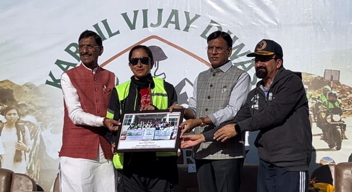 Later, a Kargil Vijay Diwas Padyatra was flagged off from Himabass School by Surekha Mahdukar Patil, sister of martyr Naik Mahadev Namdev Patil, along with her husband. The tribute march witnessed the participation of over 1,000 students, veterans, and citizens.