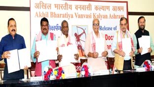 NEW DELHI, Mar 24: A vision document, the first of its kind, for Janjatis / Scheduled Tribes of India was released here today jointly by Union Ministers Chaudhary Birender Singh, Jual Oram, Dr Jitendra Singh and Prakash Javadekar, along with RSS General Secretary Suresh “Bhaiyaji” Joshi at a function organized by “Akhil Bharatiya Vanvasi Kalyan Ashram”, a social organization dedicated to the upliftment of the weaker sections, which was the inspiration behind the preparation of this document.