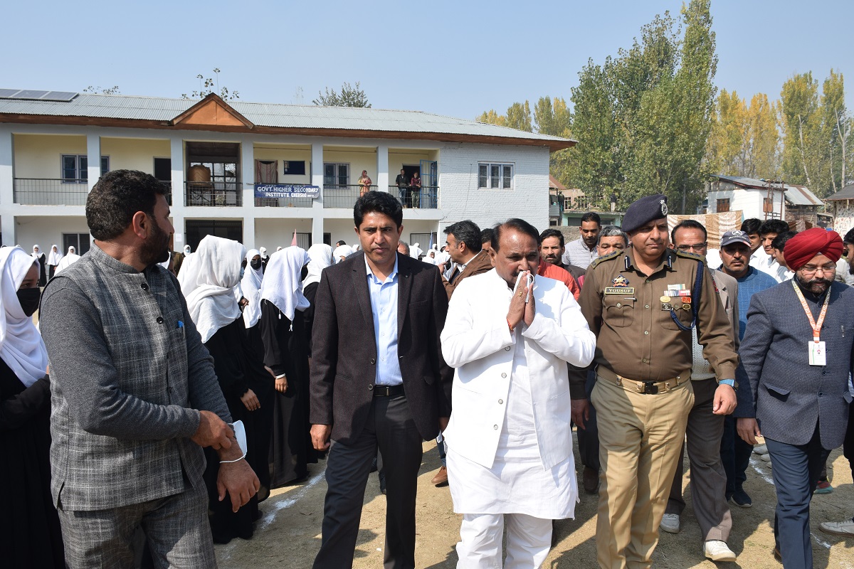 PULWAMA, OCTOBER 29: Union Minister of State for Micro, Small & Medium Enterprises (MSME), Bhanu Pratap Singh Verma today visited Panchayat Halqa Chersoo Awantipora Pulwama on the second day of Back to Village 4 programme to participate in Gram Sabha. The minister inaugurated a volley ball match and held interaction with the students of Government Higher Secondary School Chersoo.