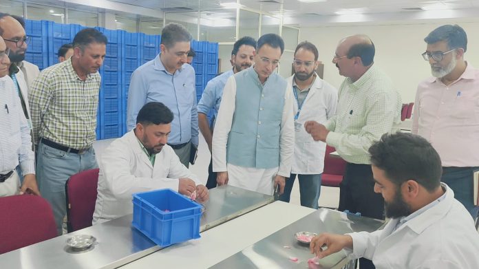 PAMPORE, July 11: In a significant move to bolster the saffron industry in Kashmir, Union Minister of State for Commerce and Industry, Jitin Prasada, today visited the India International Kashmir Saffron Trade Centre (IIKSTC) Dusoo, Pampore.