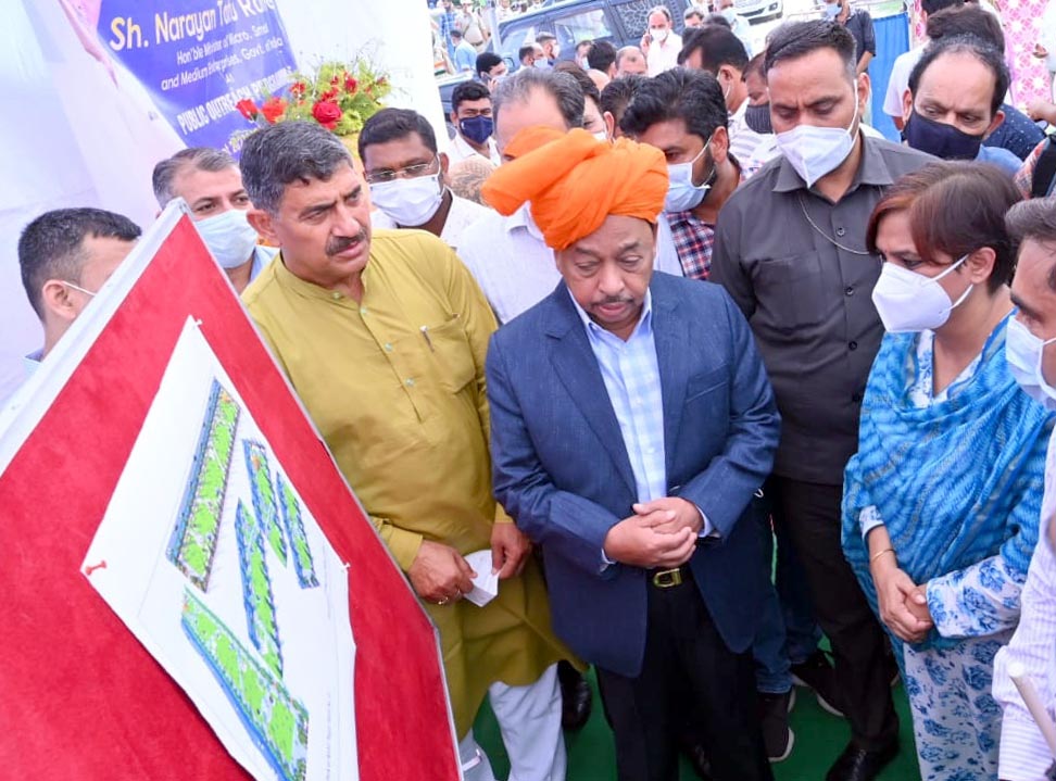 JAMMU, Sept 16: As part of public outreach program launched by the Central Government, Minister for Micro, Small and Medium Enterprises (MSME), Shri Narayan Tatu Rane laid foundation stone for development park today besides interacting with delegations of entrepreneurs and PRIs at Bari Brahmana, Samba.