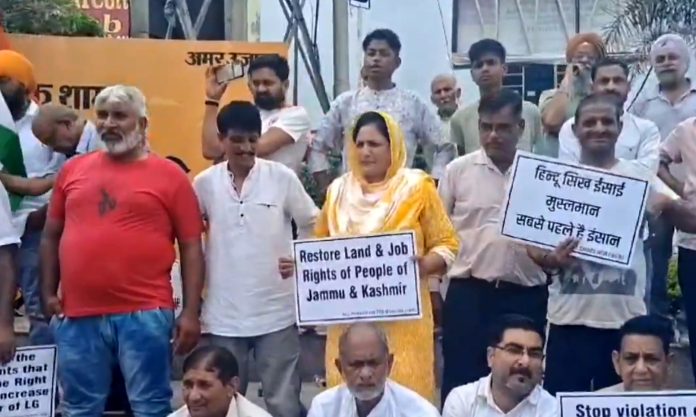 The protesters, including senior members of the Congress, National Conference, PDP, CPI (M) and Shiv Sena (UBT), assembled outside the statue of Maharaja Hari Singh near Tawi bridge in the heart of the city, also seeking rollback of a recent Central Government order providing more powers to the Lieutenant Governor.