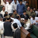 The verbal duel was pacified with the intervention of Law and Parliamentary Affairs Minister Saifullah Mir, who went personally to the seats of Congress leaders and pacified them during adjournment of the House.