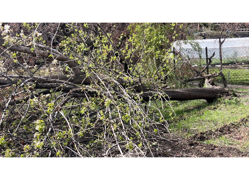 The sudden weather change has caused widespread damage to apricot trees in full bloom, breaking branches and stripping away blossoms.