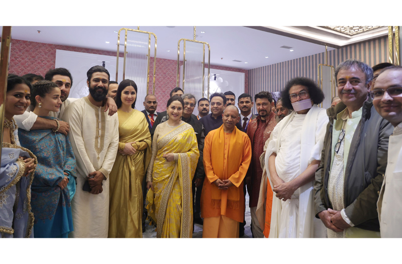 UP CM Yogi Adityanath along with film stars and others at Ayodhya on Monday. -Excelsior/Photo