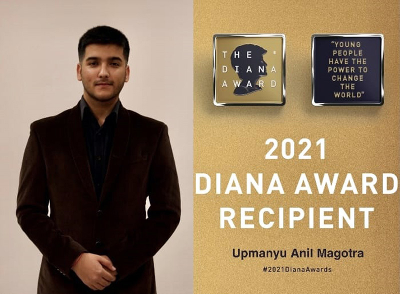 JAMMU, June 28: A young person of Jammu and Kashmir-Upmanyu Anil Magotra has been awarded with Diana Award, established by the United Kingdom in memory of Diana, the Princess of Wales.