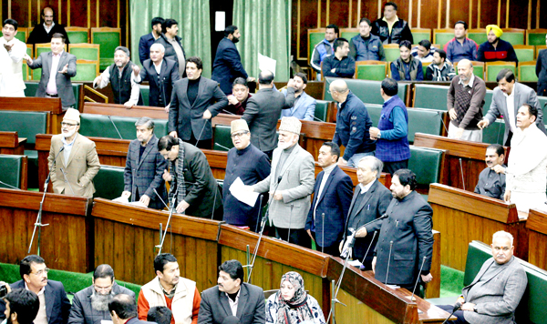 JAMMU, Jan 27: Assembly today witnessed uproar and proceedings of the Question Hour were disrupted for about 20 minutes as MLAs, including some from Ruling party, protested over delay in snow clearing operation and poor power supply situation and problems being faced by the people in the wake of heavy snowfall in Kashmir valley, erstwhile Doda district and Rajouri.