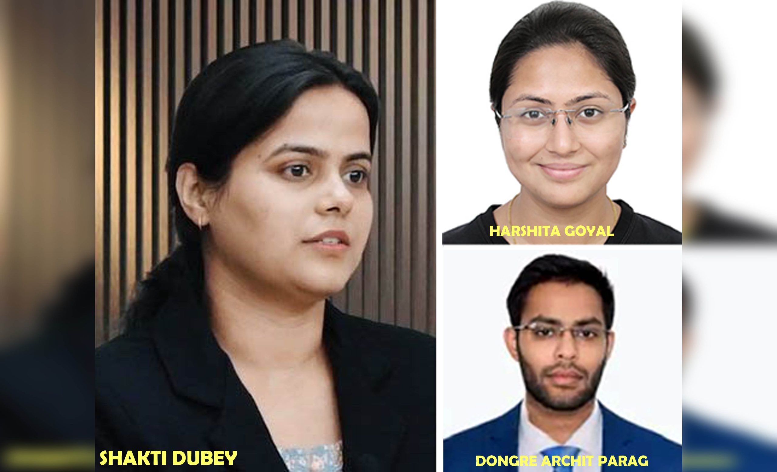 Dongre Archit Parag, who has a Bachelor of Technology (B.Tech) in electrical and electronics engineering from VIT, Vellore, stood third in the rank with philosophy as his optional subject.