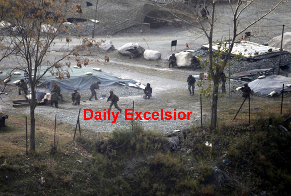 URI – BARAMULLA :An Army soldiers search for suspected militants from banker to banker after a gun battle in near Line of Control (LoC) in Uri sector in North Kashmir’s Baramulla district, on Friday, while six militants enter the Gingal army artillery camp in Uri were Six Army soldiers, including a senior army officer, Three cops and six militants were also killed in a suicide attack on a army artillery camp early on Friday morning . ..Excelsior/Mohd Amin War