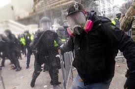 In this instance, it also left officers with little ability to resist the mob. In one video from the scene, an officer puts up his fists to try to push back a crowd pinning him and his colleagues against a door. The crowd jeers “You are not American!” and one man tries to prod him with the tip of an American flag. (Agencies)