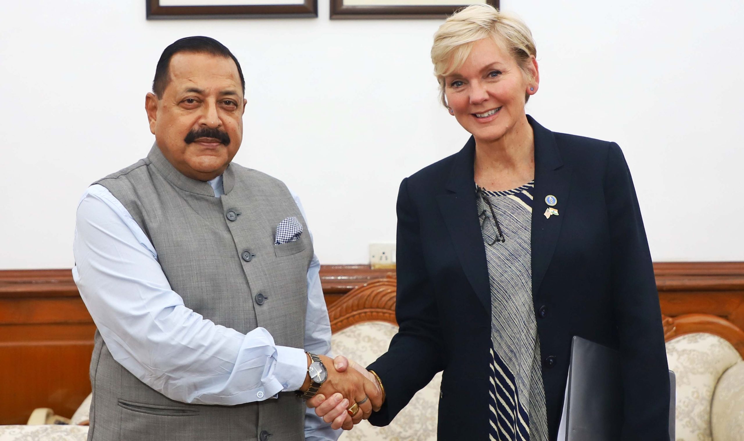 NEW DELHI, Jul 18 : US Secretary, Department of Energy, Ms Jennifer M. Granholm, who is equivalent of a union Cabinet Minister in India, called on Union Minister of State (Independent Charge) Science & Technology; MoS PMO, Personnel, Public Grievances, Pensions, Atomic Energy and Space Dr Jitendra Singh at North Block here today and discussed bilateral collaboration between the two countries.