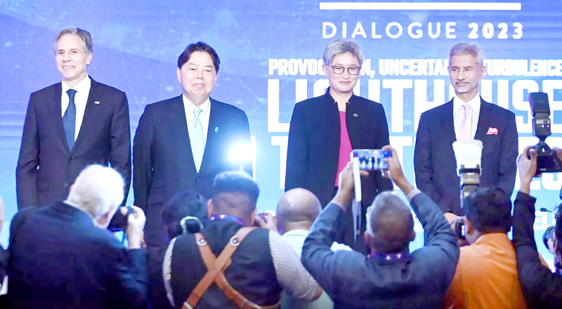 US Secretary of State Antony Blinken, Japanese Foreign Minister Yoshimasa Hayashi, Australian Foreign Minister Penny Wong and Indian Foreign Minister Subrahmanyam Jaishankar attend a Quad Ministers’ panel at the Taj Palace Hotel in New Delhi on Friday.
