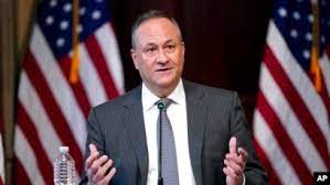 Emhoff — officially called the Second Gentleman — pointed to celebrity comedians too often using antisemitism “to draw cheap laughs, high profile entertainers and politicians openly spouting tired antisemitic tropes (and) others making comments laced with not so subtle innuendo.”