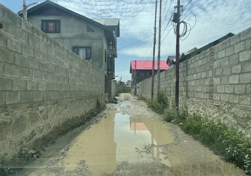 Pathetic condtion of Usman Abad Colony road. -Excelsior/Aabid Nabi