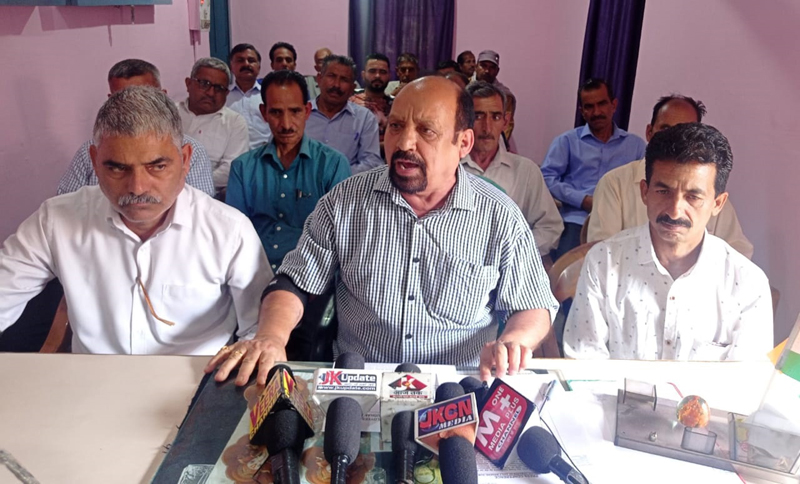 Senior Trade Union leader, Som Nath addressing press conference at Udhampur on Friday.