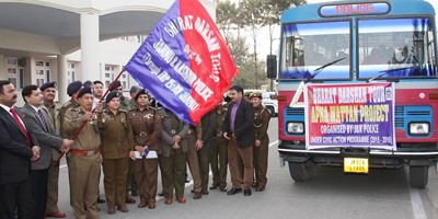 JAMMU, Feb 13: As a part of Bharat Darshan tours, organised by Jammu and Kashmir Police under its Civic Action Programme, a group of 61 girl students of different districts of Jammu and Kashmir provinces was flagged off by Additional Director General of Police (Headquarters), S. P. Vaid here today.