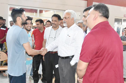 Prof P K Sharma, Vice Chancellor, SKUAST-Jammu interacting with players while inaugurating Sports Meet at Indoor Sports Complex, Chatha Campus in Jammu.